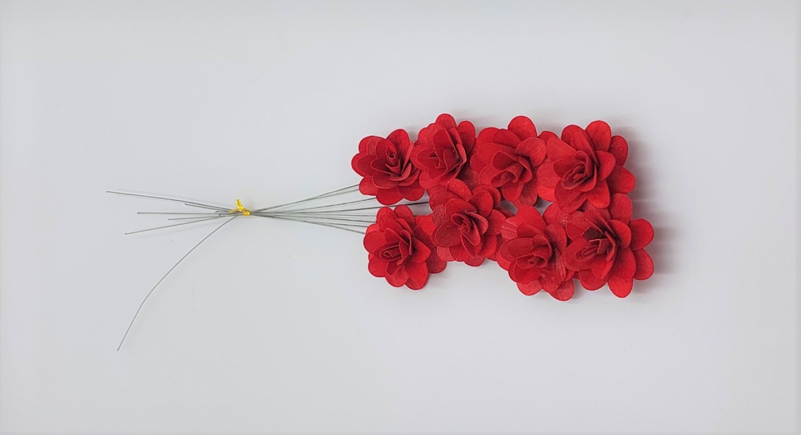 Flori de lemn  Acacia, aproximativ 6 cm diametru, diverse culori., buchete de 8 flori.